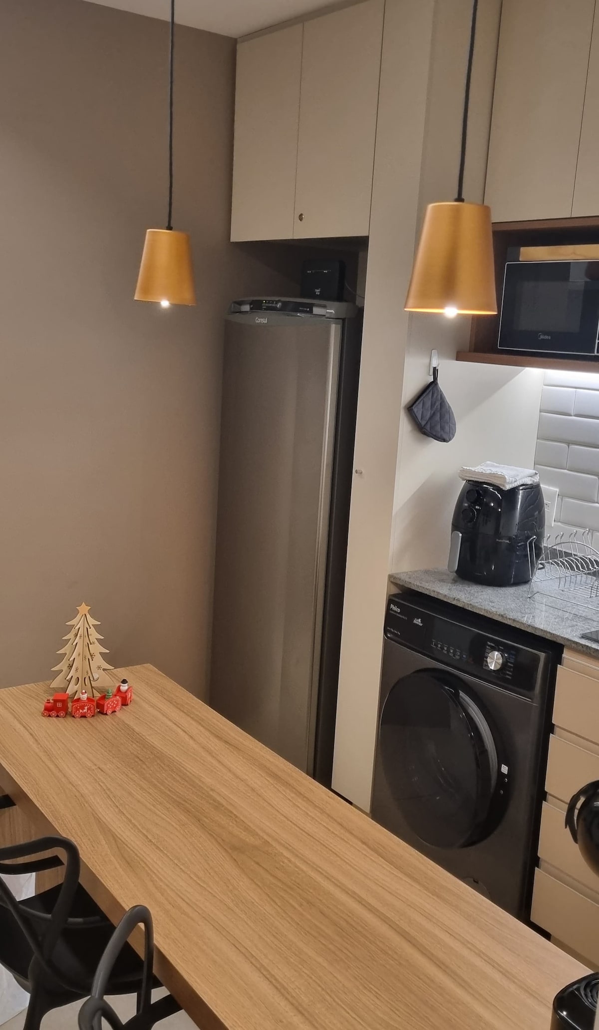 精緻的單間公寓,舒適、個性化的裝飾和45平方公尺的陽臺。 住宿期間的所有物品。 分體式空調、智慧電視、WiFi、洗碗機、熔巖和乾燥、地窖、微波爐。 24小時接待、洗衣和遮蔽空間。 麵包店大樓外面有早餐、藥店、小酒館、健身房。 200公尺附近的市場和其他美食選擇。 Noroeste是巴西利亞的一個高端街區。 市區距離國會大廈6公裏。距離機場23公裏。