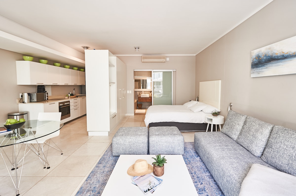 This fully equipped, centrally located studio is only a 5 minute walk from the Convention Center and a stunning 10 minute walk from the brand new Silo District and the V&A Waterfront. While at the Silo District check out the stunning Zeitz Museum of Contemporary Art Africa. The Harbour Bridge complex forms part of a beautiful new area and is directly connected to the hotel and its restaurant. Indulge in Cape Town!