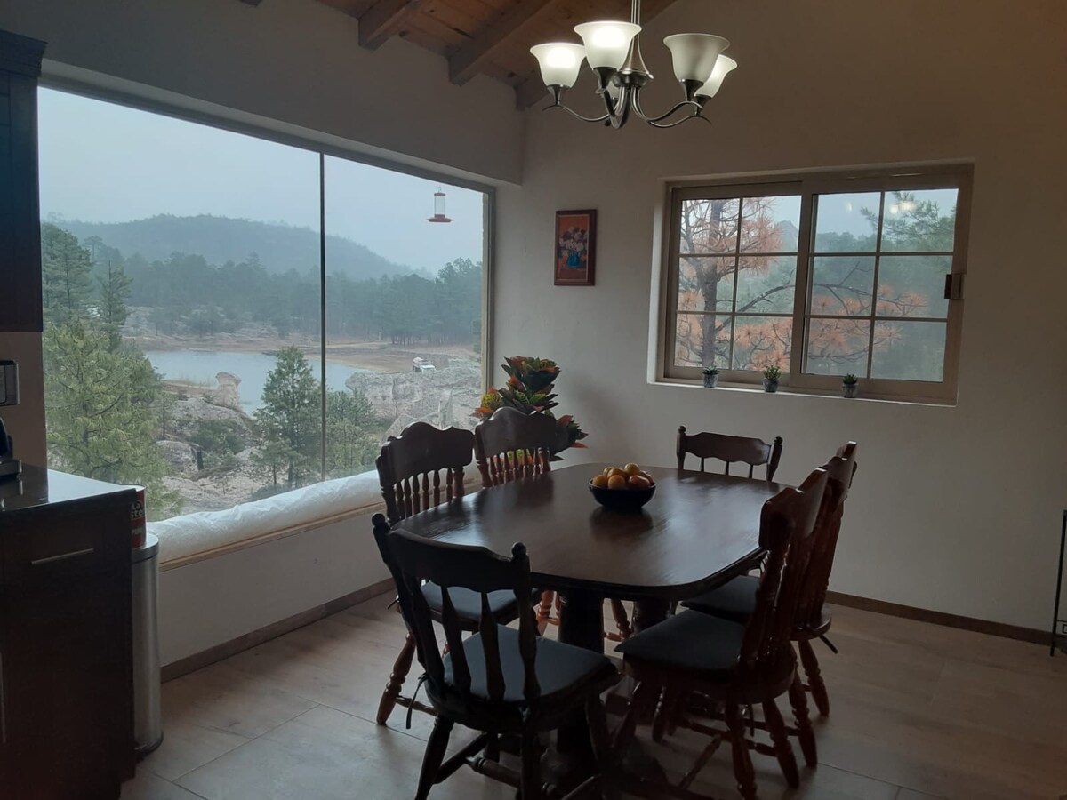 非常接近(10-15分鐘)BARRANCAS DEL COBRE/Divisadero (地址不正確)。 在這個寧靜透氣的住宿中與家人一起放鬆身心,除了普通爐子、燒烤、隔壁湖外,還有室內壁爐、木爐。 我們還有小型飛機接送。 請務必致電給我。我在資料中放了我的電話號碼,以安排抵達並給你鑰匙。