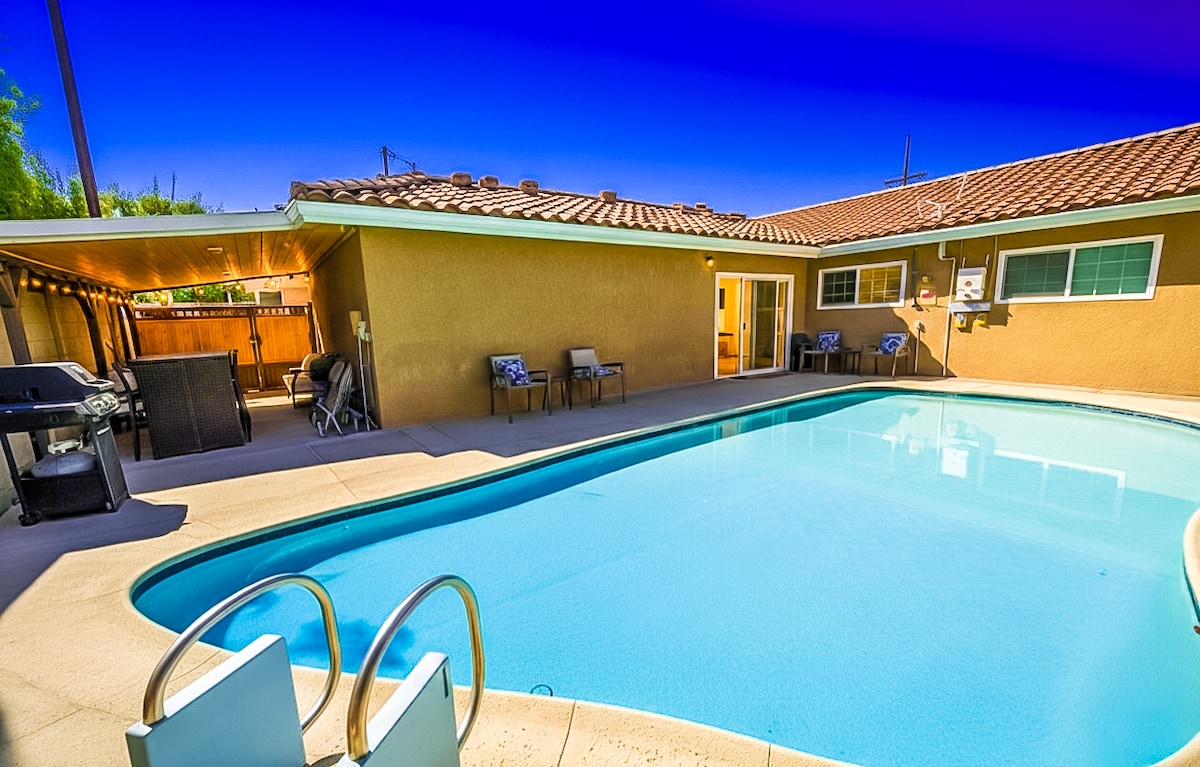 入住我們寬敞的三臥室房源,探索完美的度假勝地! 這棟房子以舒適為考量,提供您難忘住宿所需的一切設備,無論您是來這裡度過輕鬆的假期還是商務差旅。 潛入清爽的泳池,在遊戲室放鬆身心! 我們的房源有3間臥室,每間房間都有舒適的牀鋪和電視,讓您的住宿真正舒適。 開放式起居區域非常適合聚會! 只能在外面安裝監視錄影器!