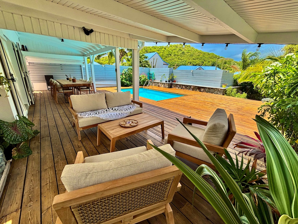 I LOVE VIEW 別墅是一片寧靜的綠洲,擁有私人泳池(可裸泳)、寬敞的露臺和豪華的廚房。在泳池邊的躺椅上放鬆身心,欣賞泳池旁的自然石材反射出的多種藍色調的景色 位於庫爾德薩克 (Cul de Sac),面向聖巴泰勒米島、皮內爾島 (l'ilet Pinel) 和東灣 (Baie Orientale)。 靠近島上最美麗的海灘、餐廳和水上娛樂,是您度假的理想之地。