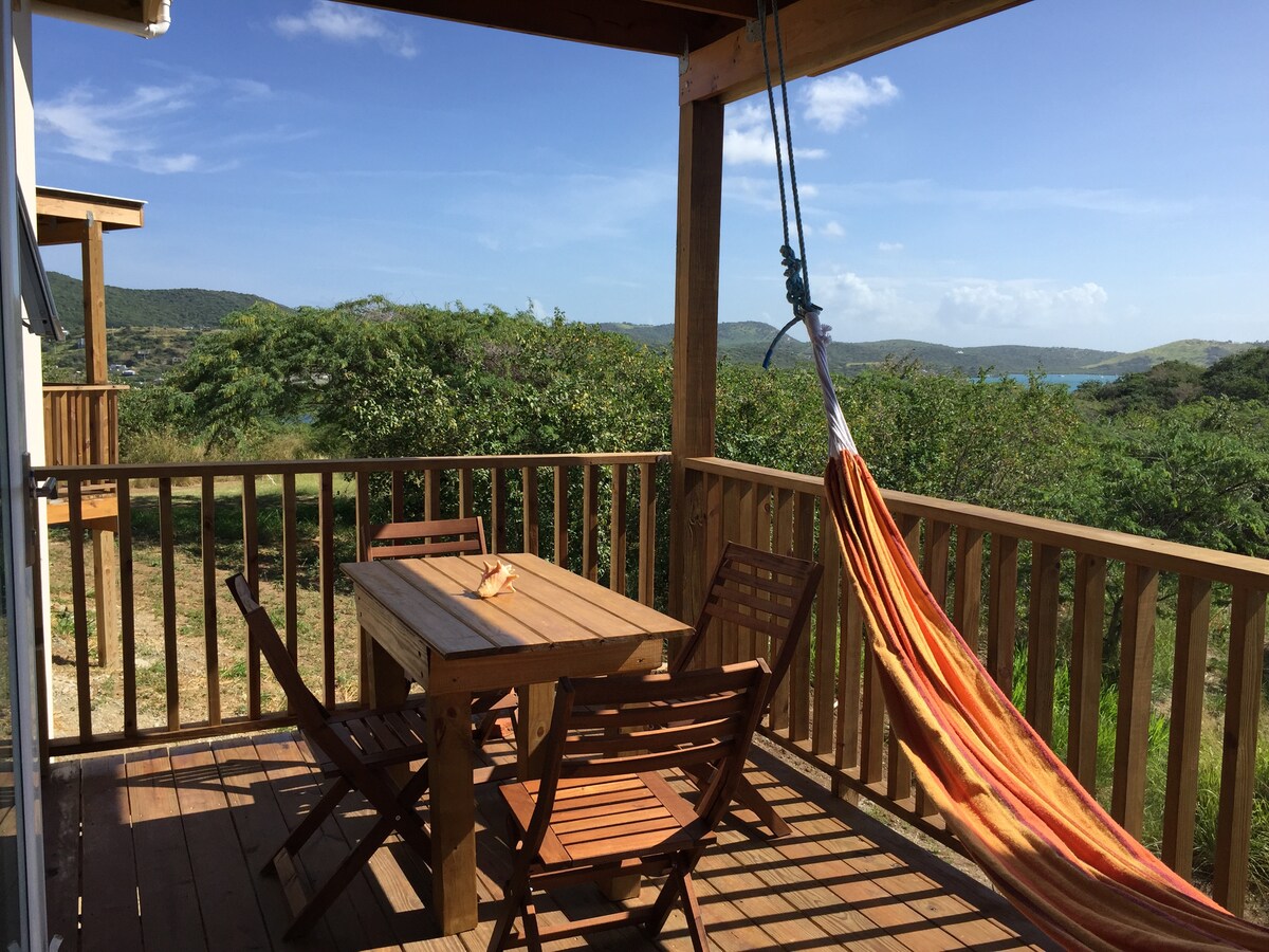 Recently built beautiful off grid hilltop apartment. Located on a private 6 acre property with a breathtaking 180-degree view of the ocean. Overlooking Ensenada Honda (east view) and complete Vieques (south view) and Puerto Rico (west view).