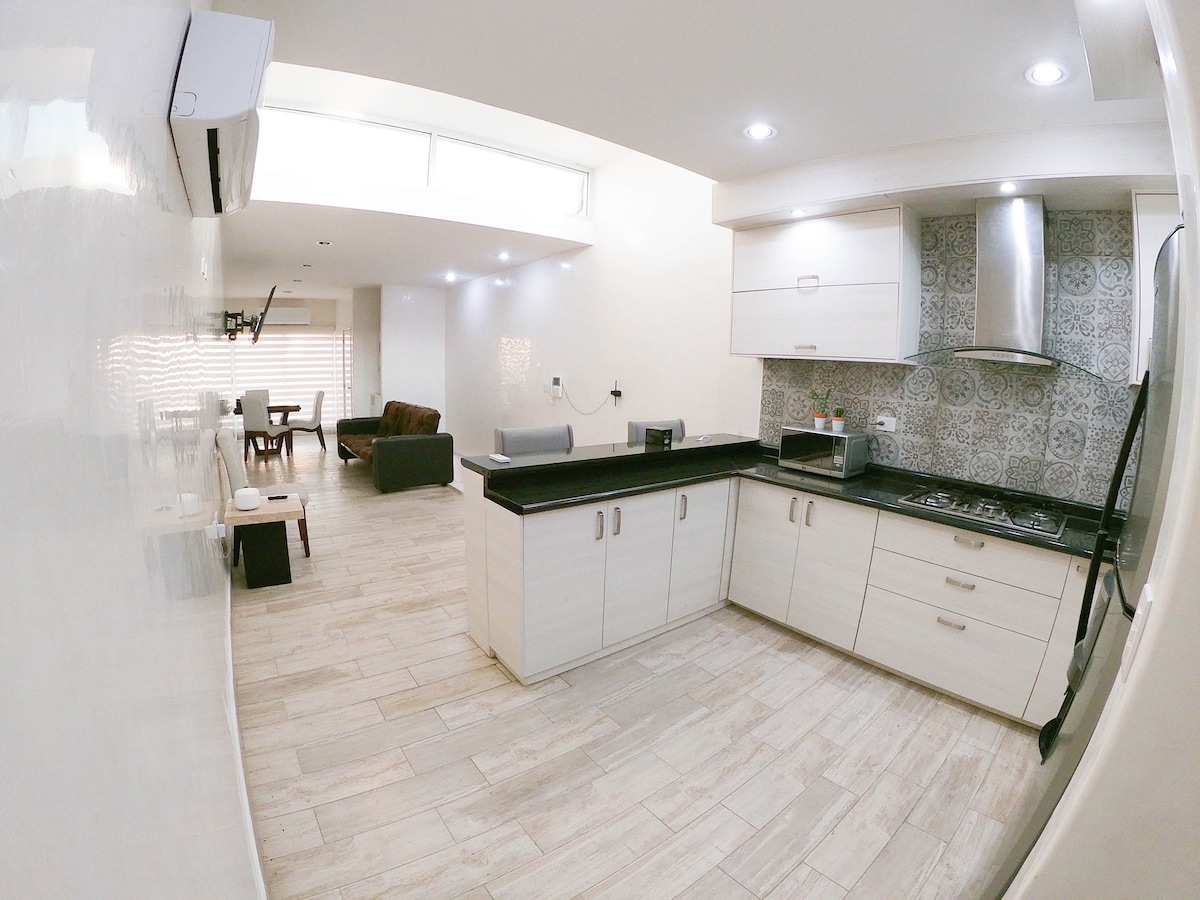 歡迎來到這個現代化的高級住宿,位於庫利亞坎(Culiacán)最中心和最便利的地區之一,距離Obregón大道(Avenida Obregón)一個街區,距離La Lomita僅幾步之遙,前往La Primavera非常方便,靠近Tomateros體育場。 它配有廚房、雙人床、單人沙發床和現代化的浴室。 非常適合短期或長期住宿。 我們也提供發票。 我們很高興歡迎您!