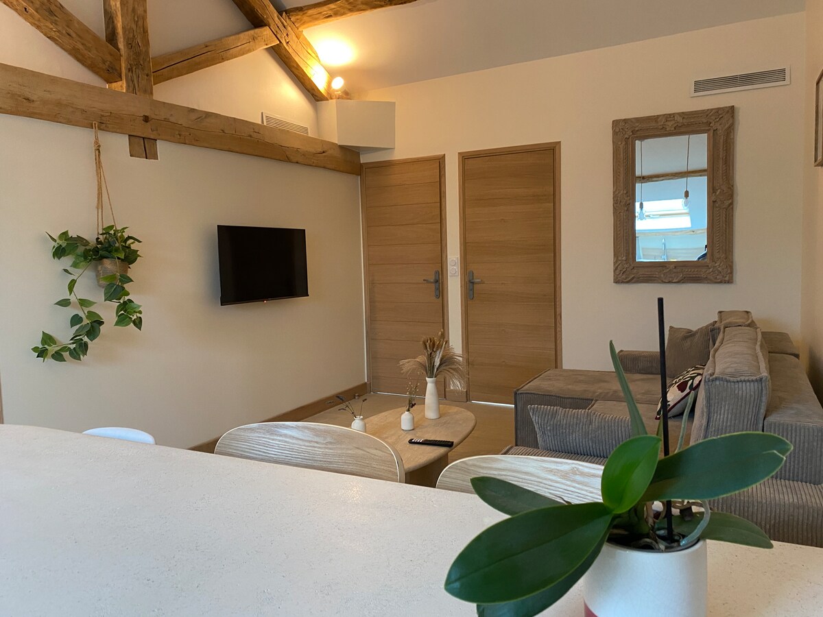 探索 La Grange cal'ain,這是位於布熱(Bugey)中心地帶貝萊(Belley)的一處獨特住所,可讓您享受放鬆身心、注重健康的住宿體驗。 你可以在水療浴缸中盡情放鬆,或者在感官淋浴間中感受驚喜。 我們的閣樓坐落於美麗的自然環境中,是探索布熱湖、艾克斯萊班和布熱自然景觀,以及享受戶外活動、遠足和單車騎行的理想基地。 溫馨舒適的氛圍,非常適合度過浪漫或放鬆身心的週末。