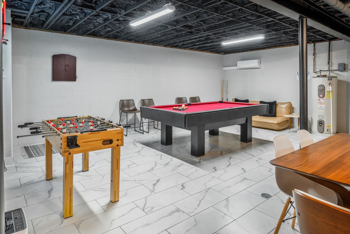 Just 20 minutes from Nashville, this private basement Airbnb offers a spacious game room with a pool table, foosball, and darts. Step outside your door to unwind in the hot tub, or enjoy a night in with plenty of board games. Full description ⬇️