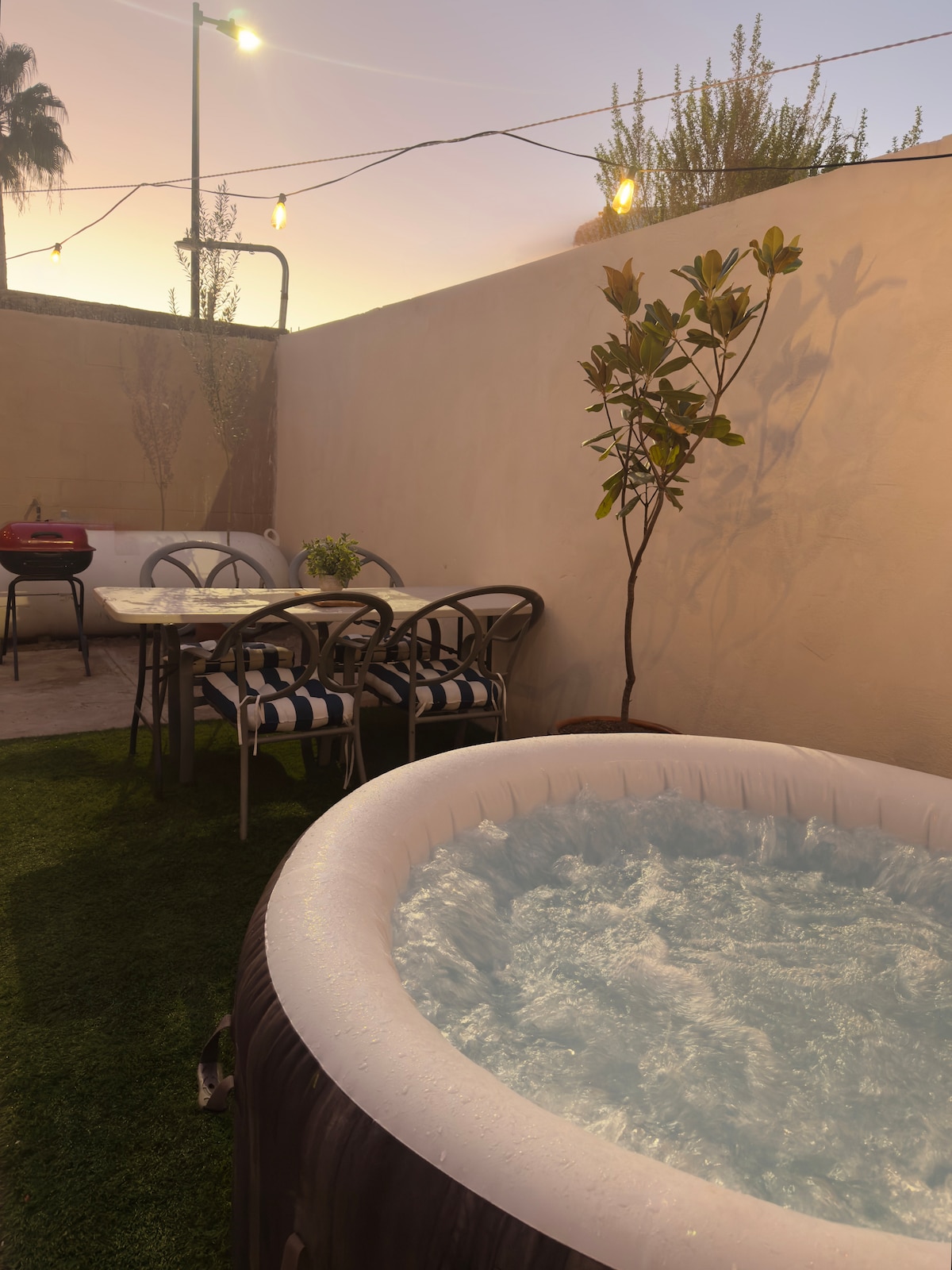En este alojamiento se respira tranquilidad: ¡relájate con toda la familia a SOLO 35 minutos del centro de la ciudad! Disfruta de la NORIA, seguridad, comodidad y privacidad para ti, toda tu familia y amigos. Contamos con jacuzzi climatizado, alberca, fogatero (no olvides tus bombones), asador, disco, bocina grande Bluetooth, hieleras para exterior, cocina completa, juegos de mesa, internet y más 🙌🏼. Área tipo bar independiente de la casa principal ❇️ 100% Fumigado Interior y áreas sociales