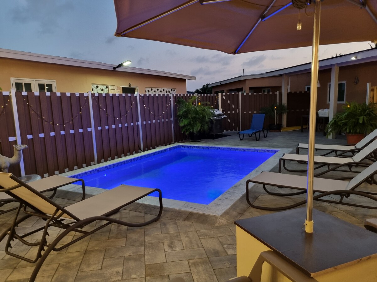 逃離到阿魯巴的隱藏瑰寶Seroe Colorado的寧靜中,這個令人驚嘆的度假勝地正在等待著你! 這間迷人的旅居距離標誌性的嬰兒海灘只有幾步之遙,為你帶來完美的放鬆和探險體驗。 享受私人泳池的奢華,同時距離阿魯巴最受歡迎的海灘之一僅幾步之遙,你的理想島嶼度假從這裏開始。 ✔ 2間舒適的臥室 ✔ 開放式設計生活 ✔ 全套廚房 ✔ 戶外(泳池、Palapa、休息室、燒烤) ✔ 高速無線網絡 ✔ 智慧電視
