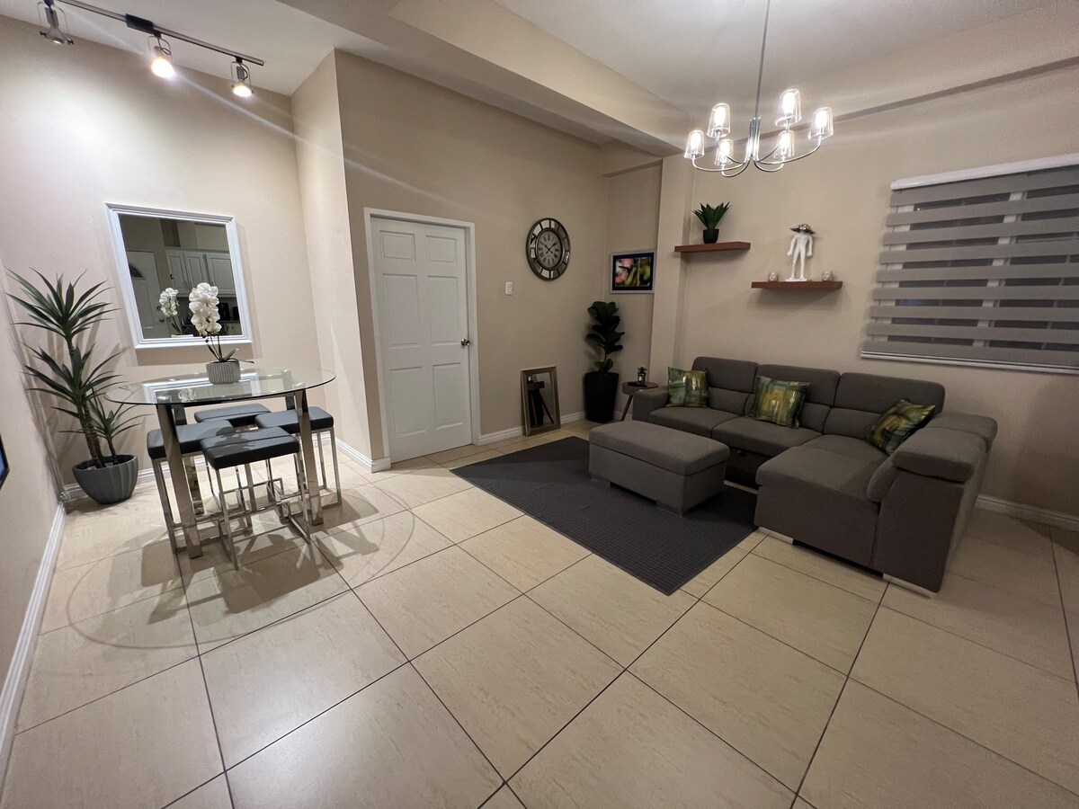 歡迎來到SuiteDreams;這是一間時尚的2臥室、2浴室公寓,安全地坐落在特立尼達皮亞爾科(Piarco)黃金地區的門禁社區內。 距離皮亞爾科國際機場僅5分鐘路程。 非常適合旅客或居家度假,擁有現代化的裝潢、設備齊全的廚房,以及共用泳池和健身房。 位置方便,靠近商場、雜貨店、加油站、銀行、餐廳和夜生活。 SuiteDreams為短期或長期住宿提供舒適、魅力和便利性。