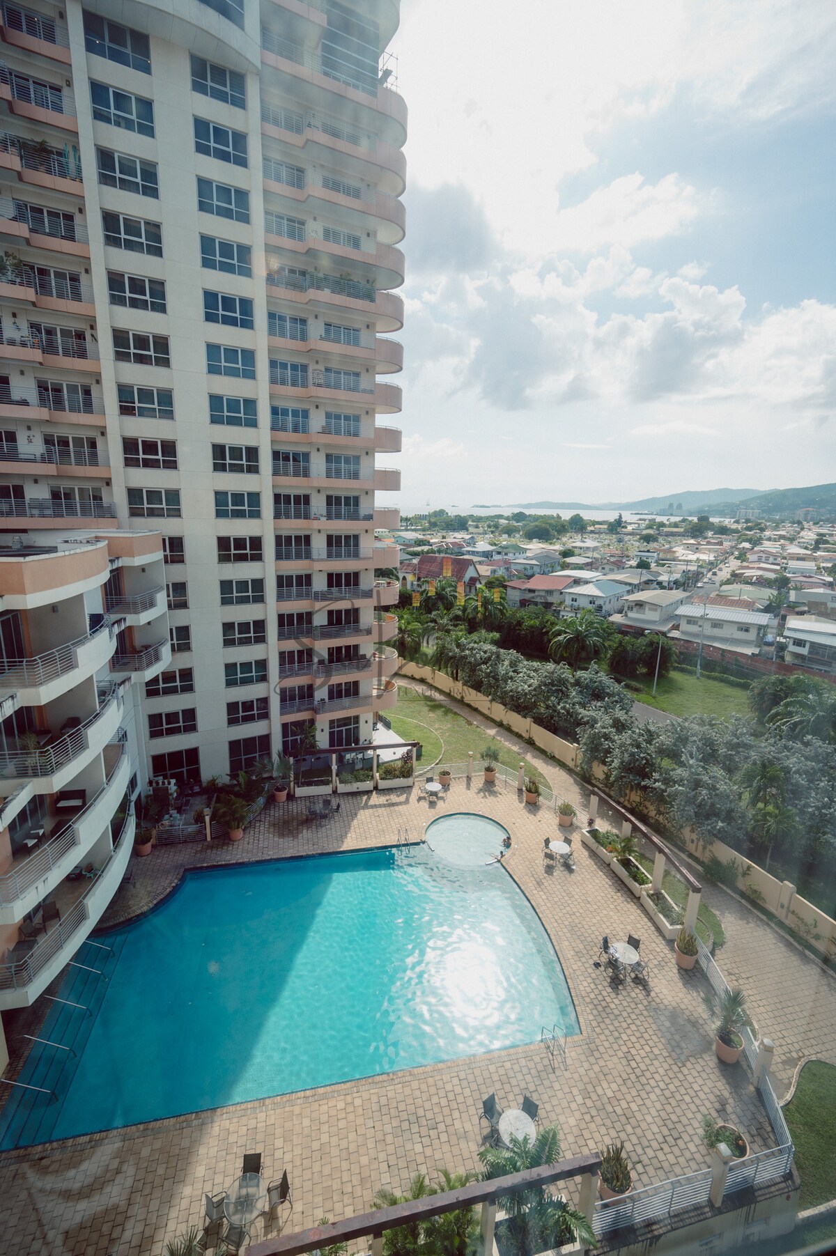 🛏️ 3 間臥室,1 張特大床和 2 張雙人床。大量藝術品和 2.5 間浴室 🍽️ 全功能廚房、8 人座餐桌、3 台電視、1 台 75 吋電視 🌇 陽台可俯瞰天際線、山丘、公園和日落景觀 🏊 私人泳池、安全的地下停車位 📍 步行即可抵達皇后公園 草原、植物園、餐廳、電影等 🥁 鋼鍋庭院、劇院、文化 距北海岸🌿30 分鐘車程:馬拉卡斯灣、帕拉敏、雨林等 🏙️ 商店、銀行、健身房,就在附近 非常✨ 適合情侶、家庭或商務旅客入住
