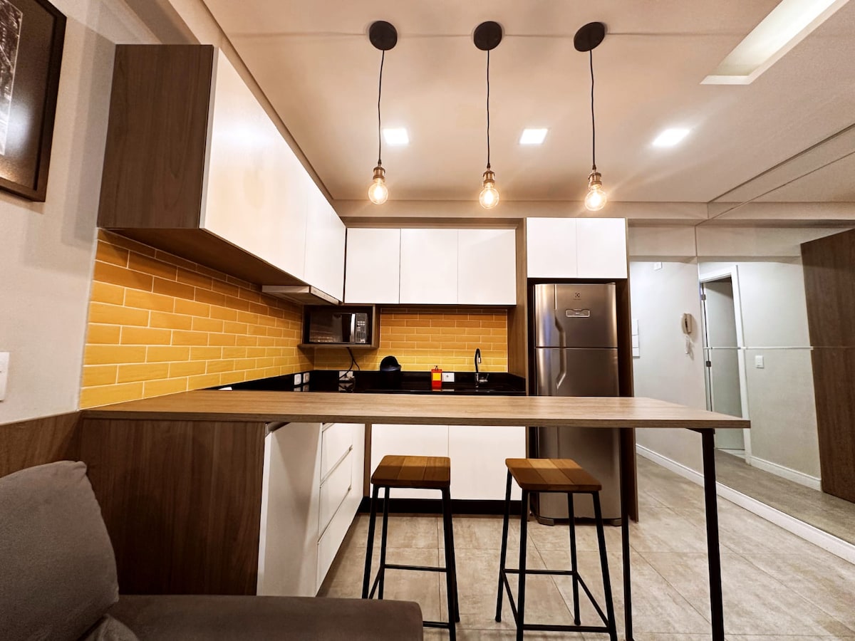 位於市政中心的現代化單間公寓,非常適合在庫塔巴尋找舒適、實用且地理位置優越的住所的人士。 空調環境、設備齊全的廚房和智能電視——非常適合休閒或工作。 🛏️ 可舒適容納最多 4 人,提供優質床上用品。 •溫水泳池 •健身房 •桑拿 •露臺 •洗衣房(付費) 🚗 大廈內提供泊車設施,每晚 R$35 透過 PIX 向旅居主人/體驗策劃人付款。