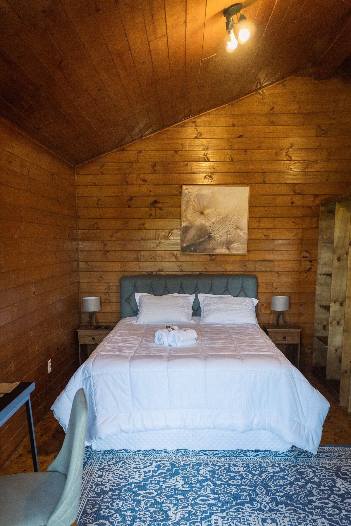 Conforto em meio à natureza Aconchegante e funcional, o Chalé N15 é ideal para quem busca descanso e tranquilidade. Conta com cama de casal, banheiro privativo, roupa de cama e toalhas, além de uma copa equipada com frigobar, micro-ondas, chaleira e utensílios básicos. Com ambiente em madeira e iluminação natural, proporciona uma experiência acolhedora, perfeita para desacelerar e se conectar com a natureza.