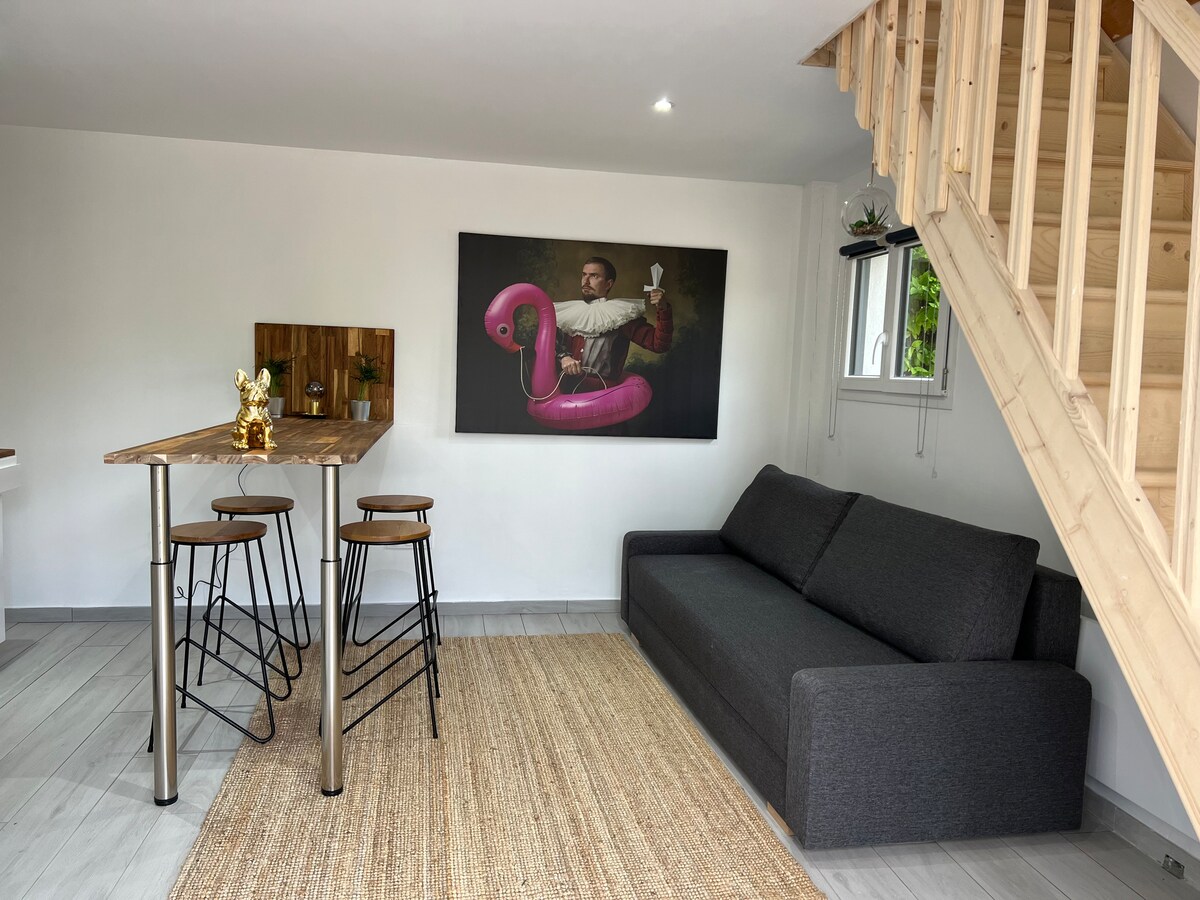 獨立的39平方米的獨立房屋,分為2層,非常安靜,可俯瞰花園。 主樓層: -客廳:電視、電動沙發床 -設備齊全的廚房:電磁爐、烤箱、微波爐、洗碗機、冰箱/冰櫃、咖啡機、水壺(住宿期間提供咖啡和茶)、 -配有花園家具的私人露臺( 4月至10月)。 樓上:睡眠區域,配有優質床上用品(140 * 200)、蚊帳;浴室:浴缸/馬桶。 夏季有2位粉絲。