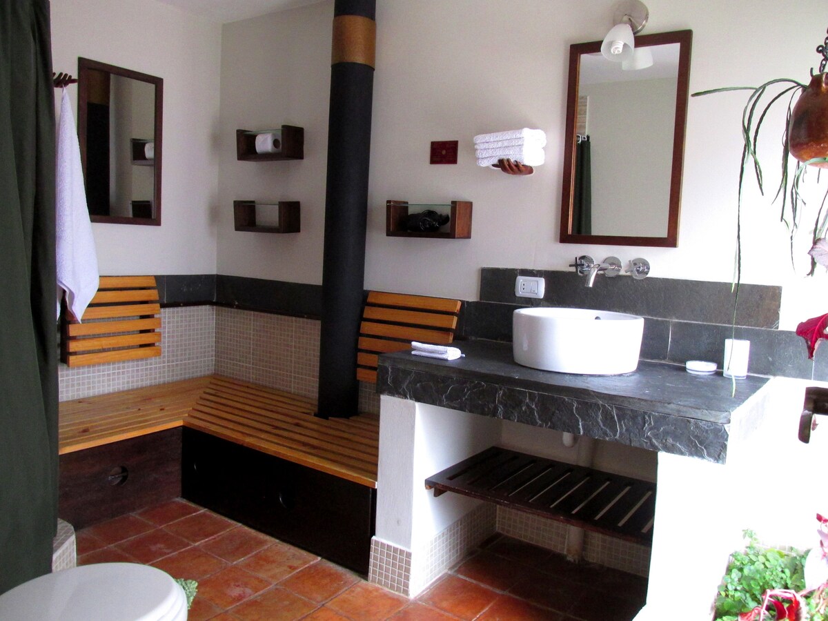 我們的房源是一間具有藝術特色的浪漫套房。所有家具和裝飾均由著名的Don Bosco協會工匠設計和製作。您和您的伴侶將擁有獨立空間,可欣賞壁爐和花園景觀。我們的床是一張全尺寸床 -乾淨度:我們的客房清潔人員經過專業培訓,為每位房客提供完美整潔的房源。 -位置:我們位於庫斯科歷史中心的心臟