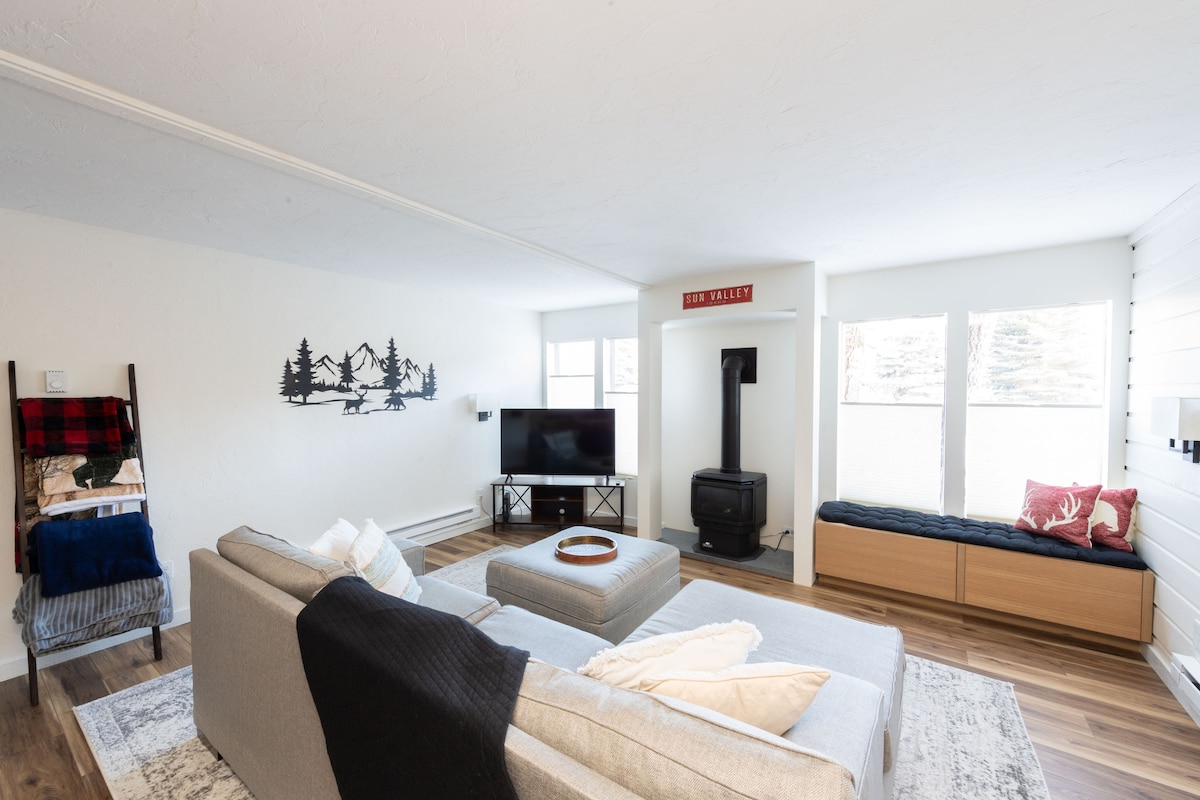 舒適的太陽谷公寓,距離Lodge & Dollar Mountain僅幾步之遙。新油漆、Pella Windows、智慧電視。私人露台和寬敞的戶外草地區。單位包含便利設施通行證。非常適合山地愛好者,是您完美的度假勝地。這間公寓地理位置優越,經過精心翻新,室內和室外生活完美融合,提供額外的沙發床,增加彈性。擁抱寧靜、附近的便利設施,並在美麗的度假勝地留下難忘的回憶。帶上您的滑雪板!