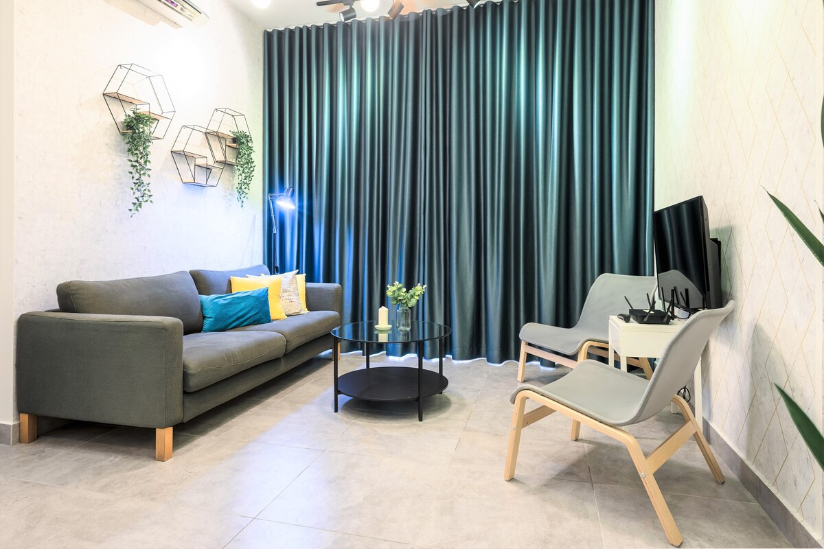FREE COMPLIMENTARY PARKING An exclusive and chic homestay designed and built personally from the ground up will truly excite the senses for those who are travelling to Cyberjaya. The unit comes exclusively with 100mbps 5G wifi and a dedicated Netflix account to cater for those who come to work and relax. Tamarind Suites also offers visitors plenty of things to do from it's fully-equipped gyms, infinity pools, shops, restaurants and cafes.
