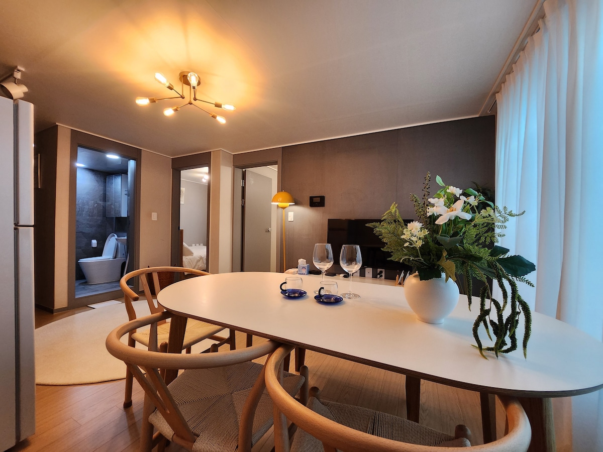 It is a large space and is suitable for several people to stay together and is located in the center. It is an accommodation that gives you comfort while staying as an emotional accommodation with clean and warm interior. With nearby transportation and infrastructure adjacent to Seongsimdang and nearby restaurants in Lotte Department Store, you can travel to Dusan and Galleria within 10 minutes by car, and Seongsimdang is a 10-minute walk from there!