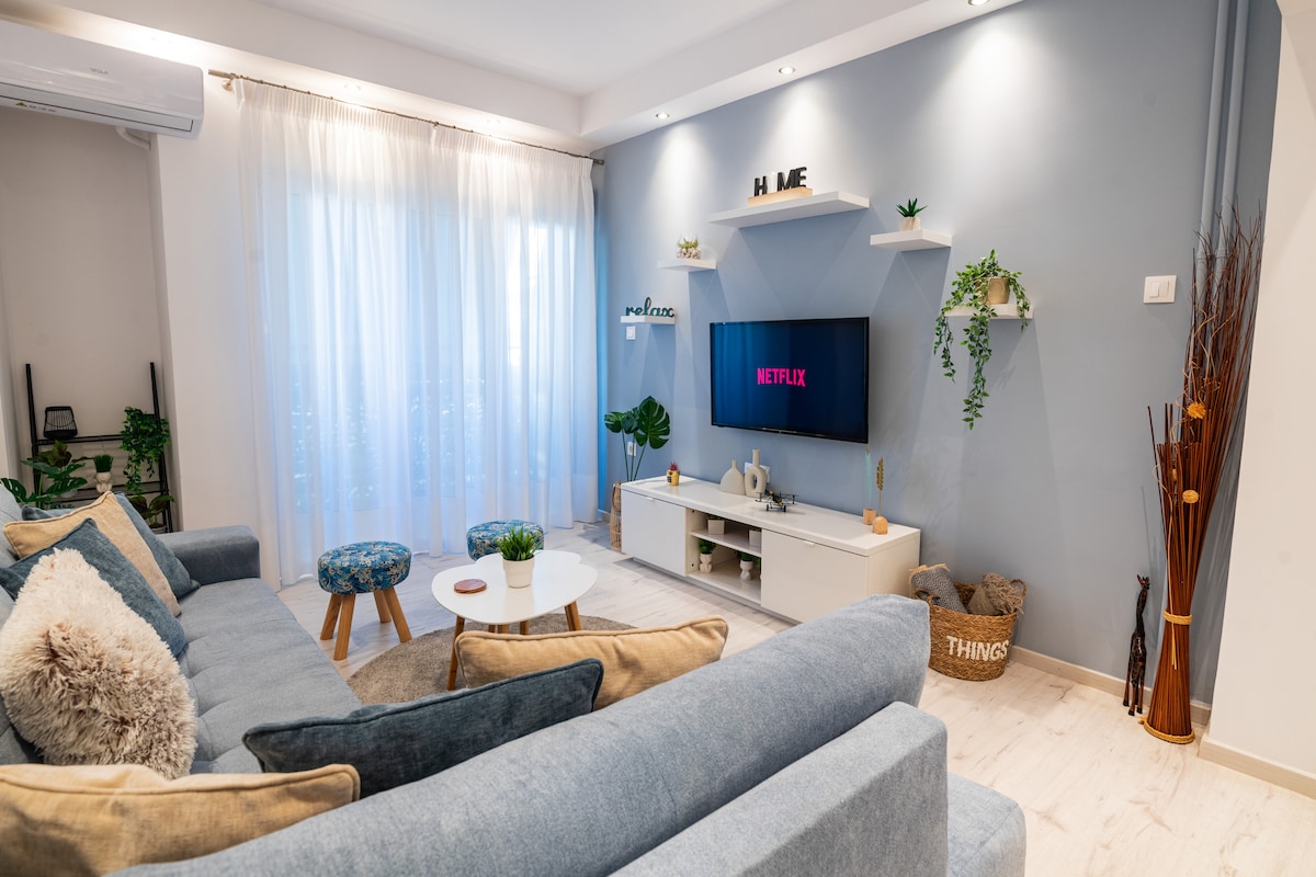 令人驚嘆的城市景觀、高端、50 平方公尺公寓,步行 12 分鐘即可抵達雅典衛城 ★ 按摩★浴池★陽臺 2 公尺寬雙人床★豪華全套浴室 ★ Wi-Fi★空調 智★慧 Netflix 電視★Nespresso 咖啡機 我們的按摩浴池是私人的,全年都可以使用。 安全、中心街區,步行5分鐘即可抵達地鐵、景點、當地餐廳、咖啡廳和商店。 ***禁止舉辦任何派對/活動***
