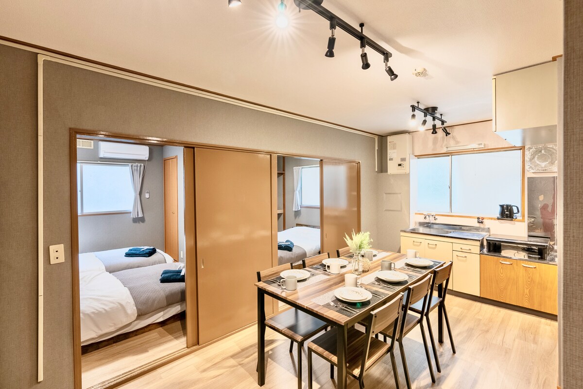地铁220米 大国町站· 1站到難波 /心斉橋 · 直逹梅田 · 整套公寓2臥室5人