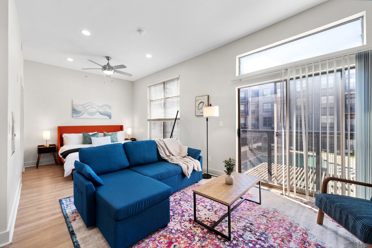 Enjoy a stylish experience with Downtown high-rise Views, close to all entertainment, restaurants, convention center, beauty centers, shopping areas and offices Public transportation, Uber/Lyft are highly available Access to gym, pool (may or may not be open)& outdoor spaces Balcony in the unit where you can enjoy yourself at any time of the day Free parking in the building