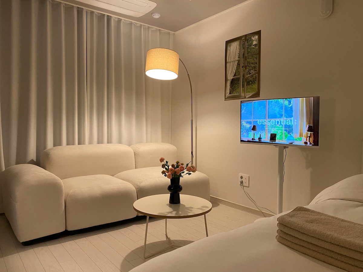 請務必閱讀🍀房源描述🍀 此房源自房東管理🩵 每天都會進行防疫和清潔。 ✔️入住時間:下午 4 點✔️退房時間:上午 11 點 (參加評價活動時請與房東協商) 📌住宿選項 -三星智慧電視 -三星系統空調 -超高速WiFi支援 -三星衣櫃 -滾筒洗衣機 -微波爐 📌廚房選項 -2個電磁爐 -馬克杯/酒杯 - 小盤子/中盤子 -1個鍋 -烹飪用具(夾子、湯勺、剪刀、刀具) -筷子和湯匙套組 📌我們的房源只能簡單烹飪(拉麵)! !️ 請注意!!😉🙏 ❌五花肉、牛排、湯、燉菜、義大利麵❌ 📌浴室選項 -洗手液 -泡沫洗面奶、洗面油 -洗髮精/護髮乳/沐浴乳 - 身體乳液 -化妝棉/棉花棒 -吹風機 我們的房源符合《公共衛生管理法》(第2條第1款第2項)的標準 是正式獲得「住宿許可證的住宿。