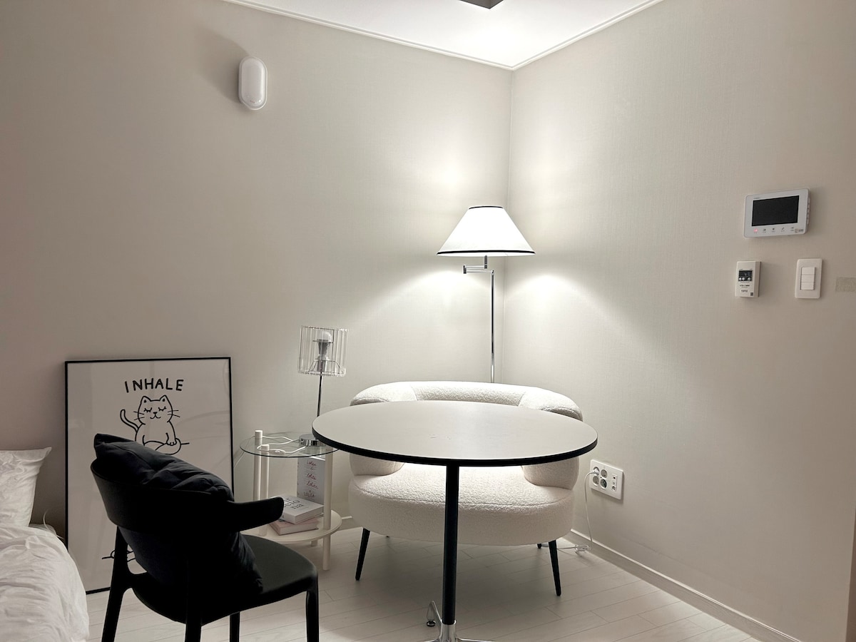 🌿Sobok House | 市內的奢華放鬆空間 木製傢俱、細緻的照明和到處都是物品,提供舒適但特別的氛圍。 🌿設施與用品 • Moving style_Netflix + YouTube訂閱帳號設定已完成😉 •空氣梳妝臺/電爐/微波爐/電熱水壺/鍋具/餐具/餐具套裝/冰箱 •吹風機/直髮器/牙刷/牙膏/浴巾/洗髮精/潤髮乳/沐浴乳/泡沫潔面/身體乳液/棉籤/化妝棉/髮帶 🌿無接觸式自行辦理入住及退房手續 下午4點→上午11點+1小時審核⭐活動進行中 🌿大樓塔樓泊車位,下午3時~月台50個位置_24小時25,000韓元 如有需要,我們建議您在房源外停車,我們會傳送訊息給你,提供更多詳情。☺️ 🌿其他資訊 •由於衛生和安全問題,請勿使用調味料/刀具/切菜板🙏🏻 •配有Hanssem沙發牀,最多可容納3人。#產生額外費用 • 🧹清潔工作由旅居主人負責,這是他們的愛好和專長。 根據《公共衛生管制法》↪第3 (1)條完成住宿業務的許可 如果您有任何其他問題,請發送訊息給我。😀