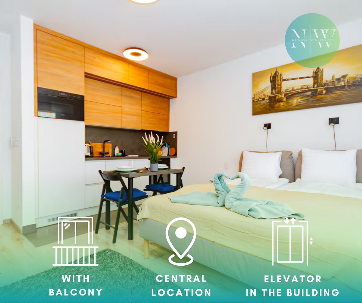 全新建築時尚的單臥室公寓經過全面翻修,採用現代設計。 公寓位於三樓,大樓內非常安靜的區域有電梯。 位於布達佩斯最時尚的地區之一,擁有城市最好的酒吧,酒吧,餐館,博物館,畫廊,設計師服裝精品店,商店和歷史建築。 公寓有一間臥室、明亮的起居區,配有設備齊全的廚房和一衛。