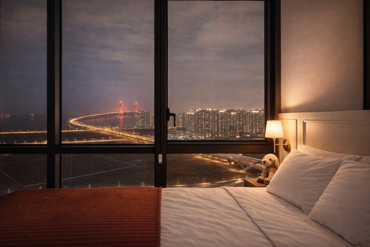 -它已被更換為新的床墊! -一邊欣賞美麗的仁川大橋景觀,您只能在房間中看到。 - Panorama Ocean & City View讓您感覺像在旅行一樣,即使您白天和夜晚都住在有美麗風景的房間裡。 -許多房客都已通過評價驗證。 「實際上看起來比相片好多了」 「日落太美了」 「夜景太美麗了」 「比飯店好多了」 「無論時區如何,只要向窗外看就會治癒」 -這是寬敞的飯店式頂層公寓,您可以在這裡完全放鬆身心,無需擔心噪音。 -由專業女傭清潔,因此請確保您在基本的飯店寢具中度過舒適的時光。 -提供美麗的仁川大橋美景,留下美好的回憶。