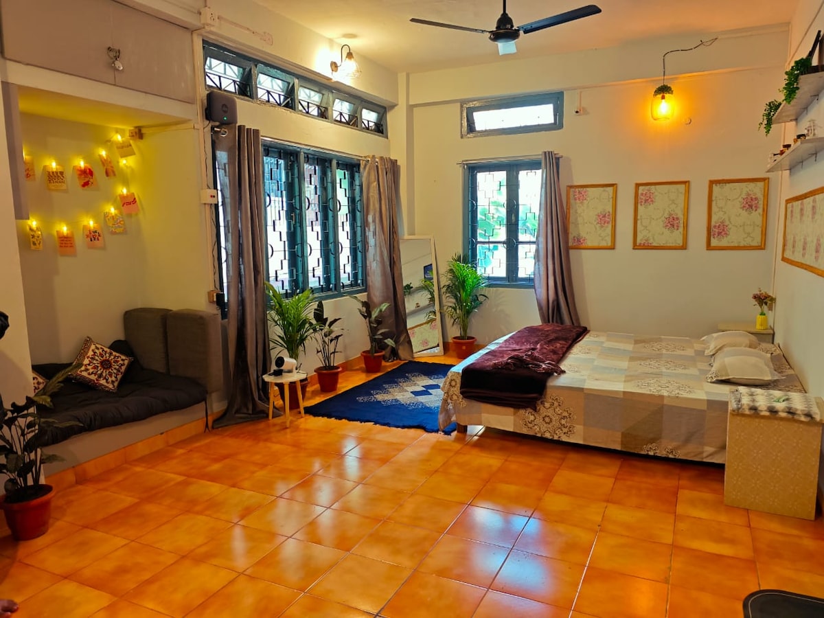 這是一個舒適的小型單間公寓,位於古瓦哈提(Guwahati)的山丘上,四周環繞著綠意盎然的景色,可欣賞到壯麗的布拉馬普特拉河(Brahmaputra river)。 • 允許情侶 •獨立入口-直達道路 • 空調房間 • 無限 WiFi • 設有停車位 • 可提供備用電源 請注意,我們不會提供雜貨,我們為您提供烹飪方式,而不是食材。 我們不舉辦生日派對或小型/大型聚會或聚會。