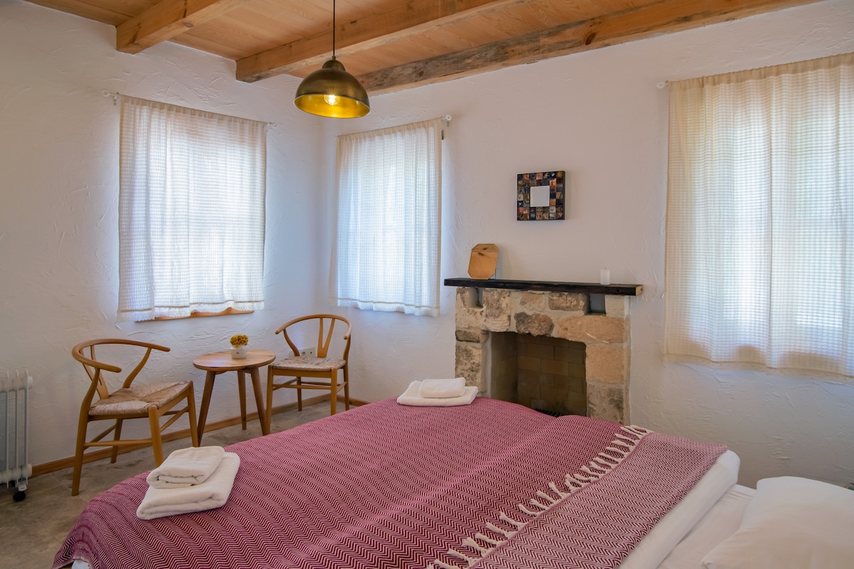 Hi, first of all these are cob houses all made by clay in the traditional stone masonery methods of ancient mediterranean. We're leading a self sustainable life 'as much as we can' so our electricity is coming from solar energy panels which are enough to run a small fridge, laptops, lights and phone charges. Wood fire water heater in the bathroom. We wanted to be far from the crowd so we re a bit not so easy to get at. So its best if you have a 4x4 or u can walk a path uphill for 15 minutes.