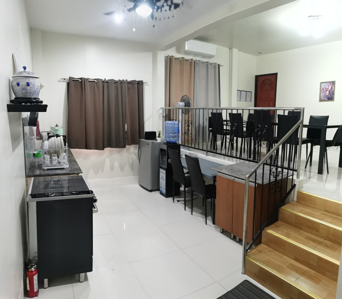 寬敞的二樓設有空調和獨家空間,有4間臥室。 兩間房間有獨立浴室,兩間房間共用浴室和洗手臺。 寬敞的空間,可供用餐、起居室和廚房區域使用,配有空調。 非常適合可容納10人的大型團體。 幼兒和8歲以下兒童免費,前提是他們使用同一張床。 步行5分鐘即可抵達SM Mall Ecoland、711和Day Spa。 4週以上的住宿可享有大幅折扣。 還提供面包車租賃。