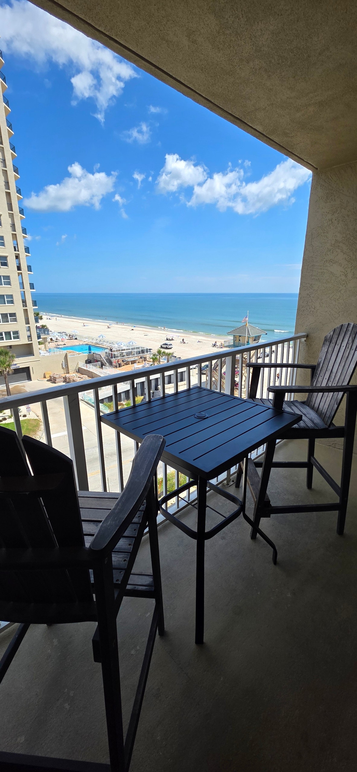 Enjoy our Heated indoor pool We are located on Daytona Beach a 1 minute walk through the pool area to be on the beach. With open pool Netflix Included, Experience our newly renovated King room studio, large balcony with amazing beachfront views it feels like you are on a cruise ship over the ocean. We have all kitchen items needed for cooking and we provide Coffee, cream, sugar .We provide all linens and towels and Beach towels and beach chairs lobby gift shop now open