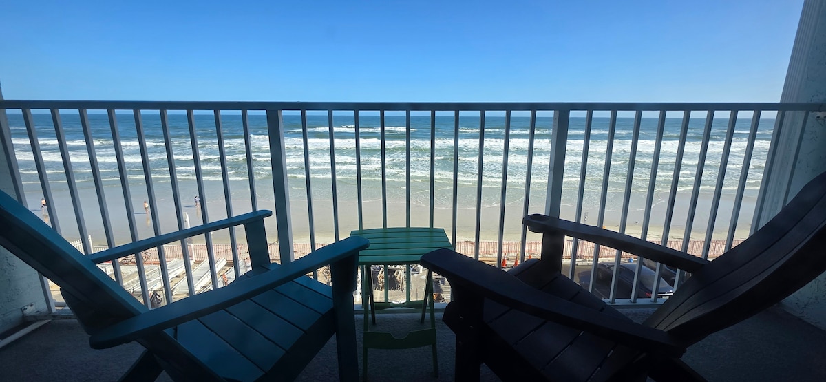 歡迎來到我們位於佛羅里達州代托納海灘的海濱套房,可欣賞迷人的海景,距離迷人的餐廳和酒吧、星巴克、CVS、購物、娛樂等僅幾步之遙!如果您覺得冒險,對面還有一個名為海盜島(Pirate Island)的迷你高爾夫球場。 我們提供海盜灣停車場的停車證,方便您使用。 從私人陽臺上欣賞壯麗的海景和令人驚嘆的日落景色。我們的海濱套房可直達海灘!
