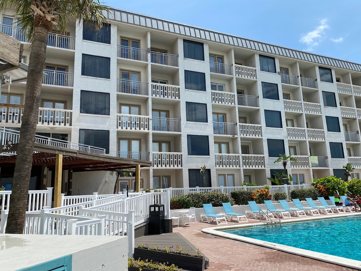 Oceanfront studio condo with a beautiful view. with wide shared balcony with seating. The current rate reflects ongoing storm-related repairs and closures of some amenities. Ideal for guests who value being close to the beach and ocean views over perfection and understanding the challenges. Some recently opened: **Open Amenities • 8:00 AM – 8:00 PM • One Outdoor Pool • Indoor Pool • South Spa • Fitness Center / Gym • Sauna **Primary guest registration with ID required through guest portal.