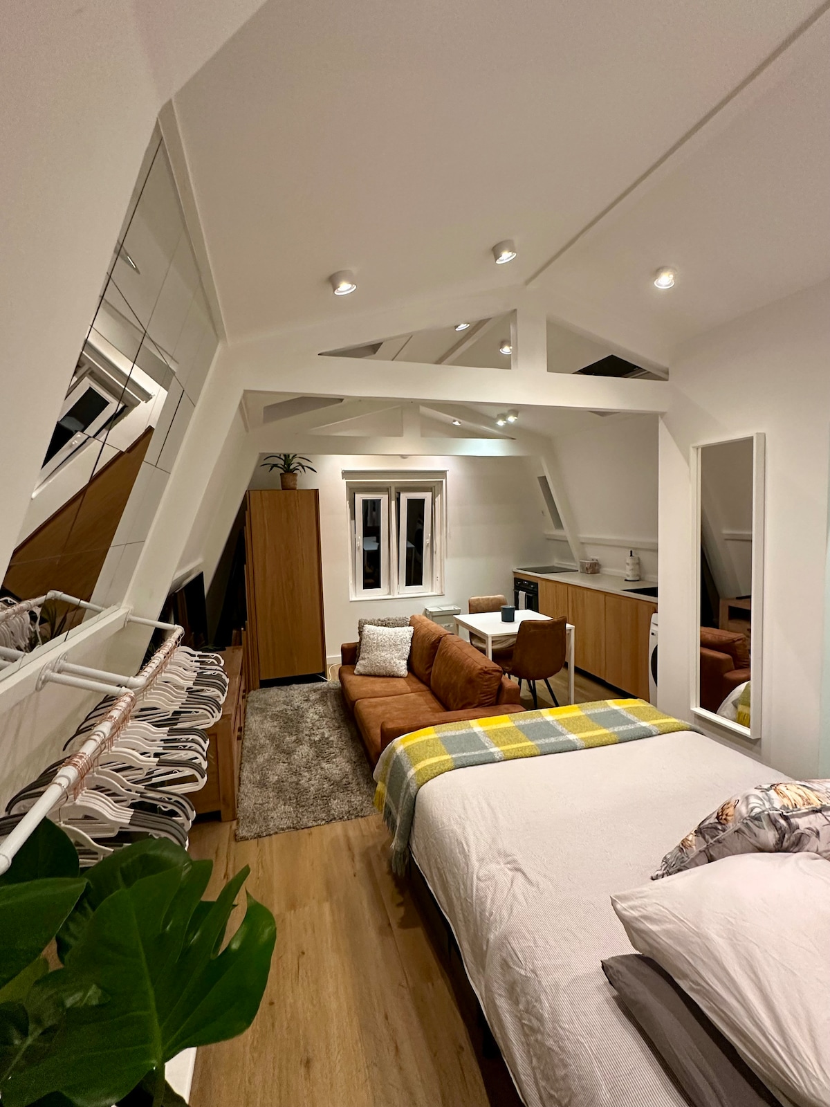 我們位於著名的Pijp區的50平方公尺頂樓公寓提供隱私和安靜。私人屋頂露臺享有全天陽光,並設有休息室和6人的餐桌。 現代化的廚房設有四人吧檯和陽台。客廳配有大型電視和6人的餐桌。臥室有一張舒適的加大雙人床、空調和電視。 步行3分鐘內即可抵達公共交通、超市、餐廳和酒吧。 希望您會和我們一樣喜歡它!