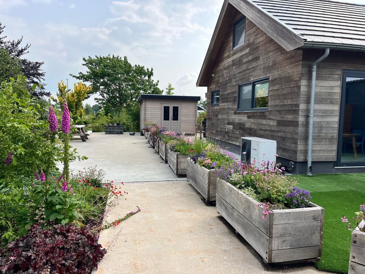 這座舒適的花園小屋位於草地中間,可欣賞奶牛的美景。 私人通道和後院完全免費。可以徒步旅行、騎自行車和劃船。允許寵物每晚額外支付10.00歐元。