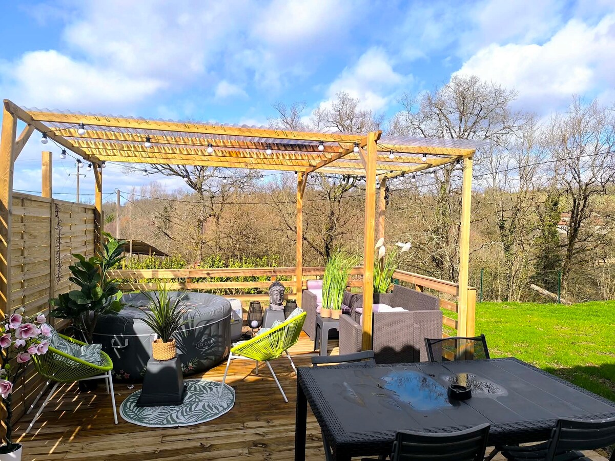 Notre maison se situe au lieu-dit Le Couquet, commune de Capdenac-Le-Haut (46), aux portes du Lot et de l'Aveyron, joli village médiéval fortifié qui surplombe la rivière Lot et faisant parti des plus beaux villages de France. Le logement proposé se situe à l'étage de notre maison. Entièrement rénové, il est indépendant et accessible par un escalier extérieur. Il dispose d'une terrasse qui surplombe la piscine et offre un beau panorama sur la Vallée du Lot. Prévu pour 2 adultes
