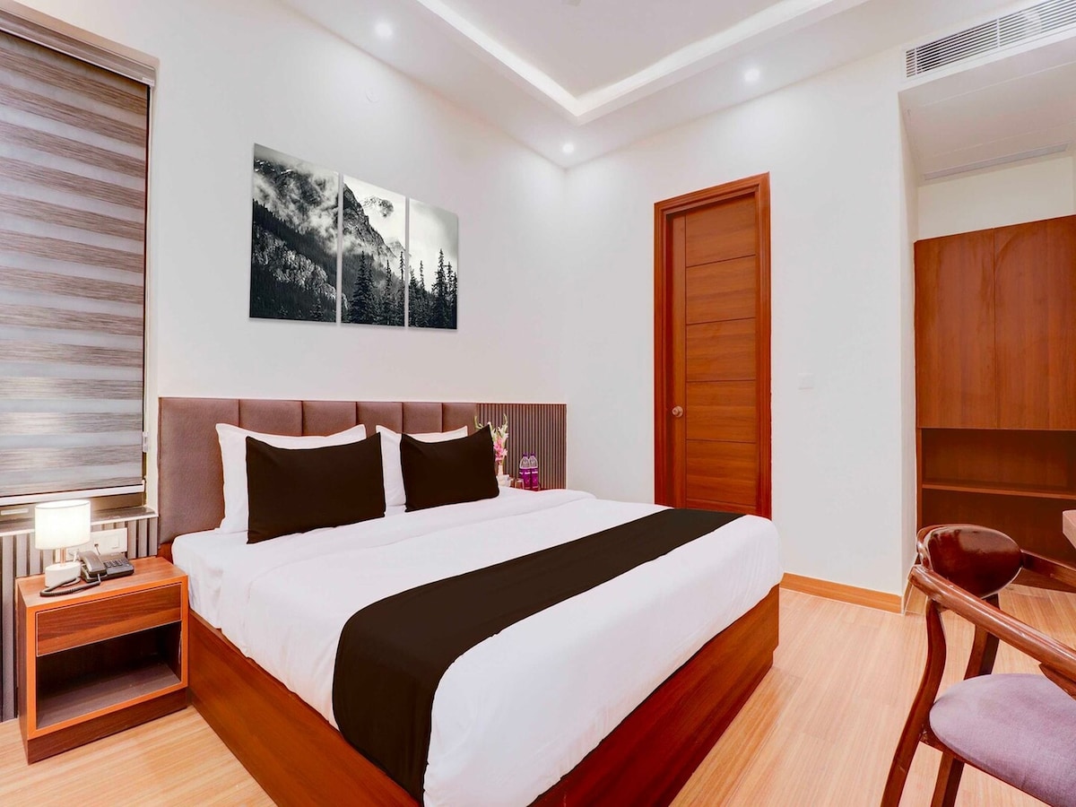 Just 350 meters from Mussoorie’s Mall Road, our Valley View Room offers comfort and convenience. Enjoy a king-size bed, private balcony with stunning Himalayan vistas, modern amenities like a Smart TV, mini-fridge, electronic safe, and tea/coffee maker. The room features hot/cold AC, a sit-out area, and a spacious bathroom with premium amenities. The property includes free drive-in parking and an on-site restaurant, perfect for families, couples, and solo travelers.