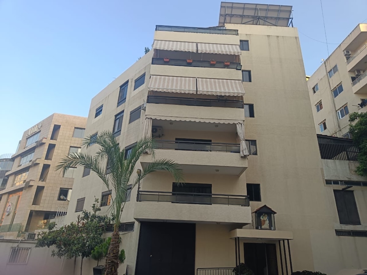 整潔整潔的家具公寓可供移動-太陽能系統24小時電力,包括熱水器和空調 -3間臥室、6張牀、2間浴室、客廳、2個陽臺、廚房 -配備所有房間的空調分體驗 -全套廚房+自動洗衣機 -地理位置優越:距離機場或貝魯特/Achrafieh和知名大學10分鐘 -步行5分鐘即可抵達超市、麵包店、肉店、藥店和健身房、汽車車庫、加油站、籃球和足球遊樂場。