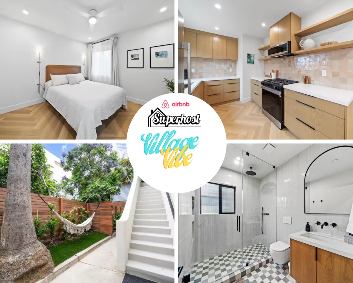 The Sanctuary是一個全面翻新的聯排別墅,距離Mission Beach的白沙僅5個房屋。此房源設有各種設備與服務,包括毗鄰主臥室的私人桑拿房、最多可容納5人的戶外按摩浴池、露臺火坑休息室和屋頂休息室,您可以在那裡欣賞日落和煙花。廚房配備齊全,配有所有基本電器,包括攜帶式藍牙喇叭的攜帶式咖啡機,可在海灘或房源周圍享用!