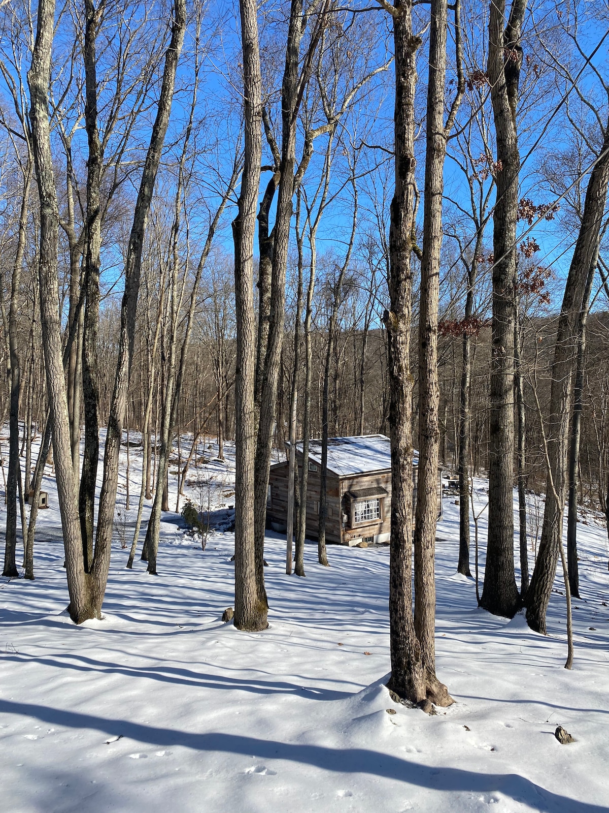 在4英畝的僻靜土地上,逃離到我們的神奇河畔三角屋。 在迷人的河流中暢泳,在樹下燒烤晚餐,並在燈光閃閃的營火旁聚會,仰望滿天星辰。 在這間舒適的2居室小木屋中放鬆身心,欣賞鹿、鷹和螢火蟲。 非常適合情侶、自然愛好者,以及任何渴望安靜度假的人。 距離風景優美的徒步旅行和特拉華河探險僅幾分鐘路程,與大自然深深相連,讓您感覺自己彷彿走出了故事書。