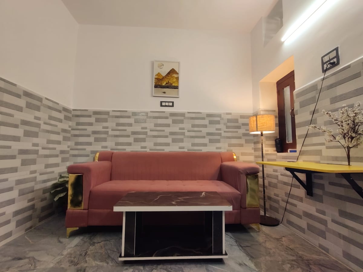 MES Secret Hide-out Bedroom with Lounge -位於南德里-Gk1的心臟地帶,是一個美麗的1 BHK ,有一間大臥室,配有65英寸電視和2張沙發床和一個附帶的馬桶。獨立休息室,配有廚房和沙發床,配有電視。前面還有一個花園,配有座位和漂亮的日落景觀。可容納4-7位房客。總面積1000平方英尺。請注意: 4月7日25日入住時間下午5: 30