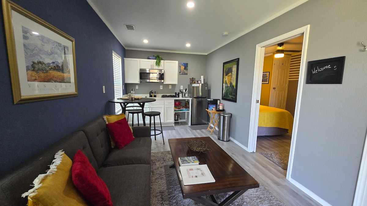 歡迎來到這間舒適的單臥室公寓。非常適合情侶或遠距工作者尋找北德州度假勝地。此房源位於The Colony附近,方便前往附近的商業中心、購物和用餐。室內有舒適的臥室、放鬆的起居區和設備齊全的廚房。高速 WiFi 和指定工作空間,使其成為工作或放鬆的理想之地。無論是出差或休閒,這間公寓都是探索達拉斯地區的舒適基地。