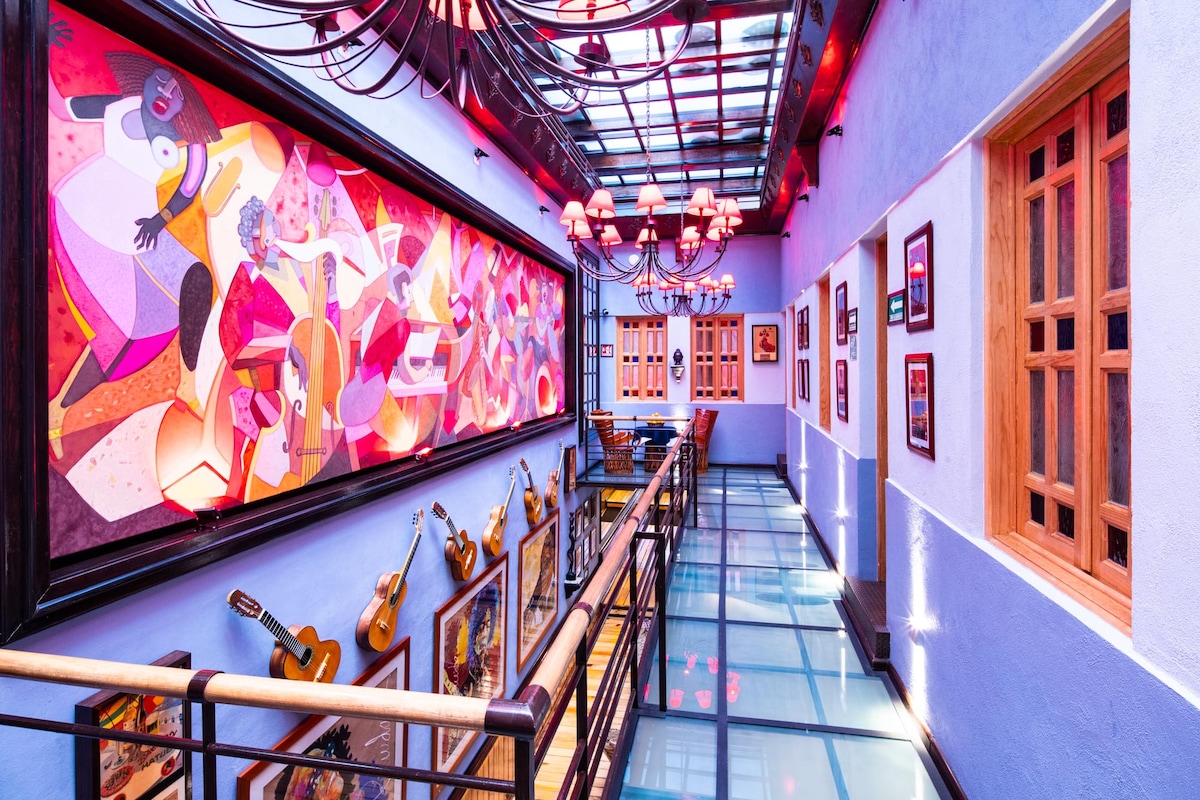 Have the inclusive Continental breakfast downstairs at the Caffe Toscano before returning to an apartment full of eye-catching details. These include a striking mother-and-child portrait, leather chesterfield chairs, and carved-gilt mirror-frame accents. This loft is located on one of the most sought-after areas of Ciudad de Mexico. In particular, Roma Norte is known for its rich variety of restaurants, galleries, bars, and nightlife. Stock up on provisions at nearby grocery stores as well.