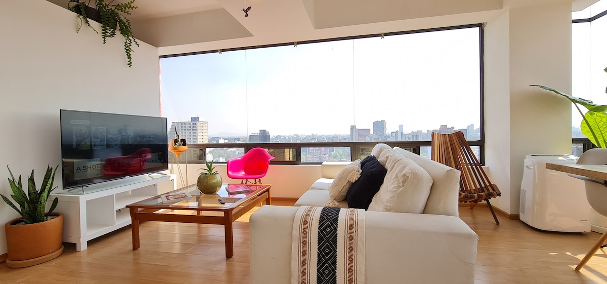 Enjoy this wonderfull 1 bedroom apartment: * Breathtaking Panoramic Views Skyline * One of a kind * Best Location Mexico in City * Super safe + Lots of Restaurants + Café´s + Stores & more * Top Amenities * 24/7 Concierge at the lobby * Super Fast & very reliable Wifi * Comfortable dedicated work space * Fully equipped Kitchen * Queen Size bed with European memory foam mattress. * Well thought and super comfortable space * Full of plants * Sparking clean and sanitized * Spacious * Full of Magic