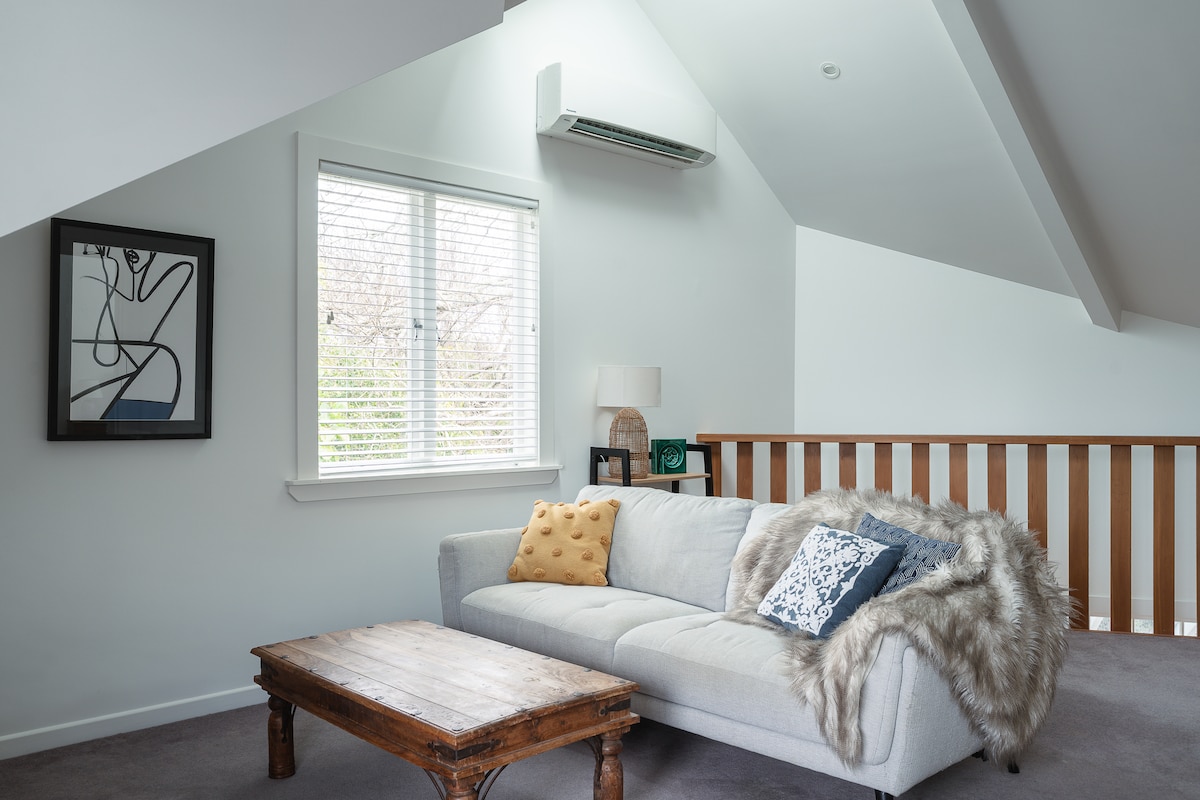 我們的新空間位於歷史悠久的德文波特,是一座擁有100多年歷史的朝北(陽光)平房的一部分,並設有花園。我們沒有現場廚房/烹飪設備。步行15分鐘即可抵達村莊和20多家咖啡廳、酒吧和餐廳,再步行2分鐘即可抵達渡輪,再步行12分鐘即可抵達奧克蘭中央商業區。步行 5 分鐘即可抵達公共高爾夫球場,步行 15 分鐘即可抵達 3 個海灘。安靜的空間有一張雙人床,在一個小的相鄰房間有一張特大單人床。您自己的入口、浴室、茶、咖啡機、冰箱、智慧電視快速網路和暖氣。