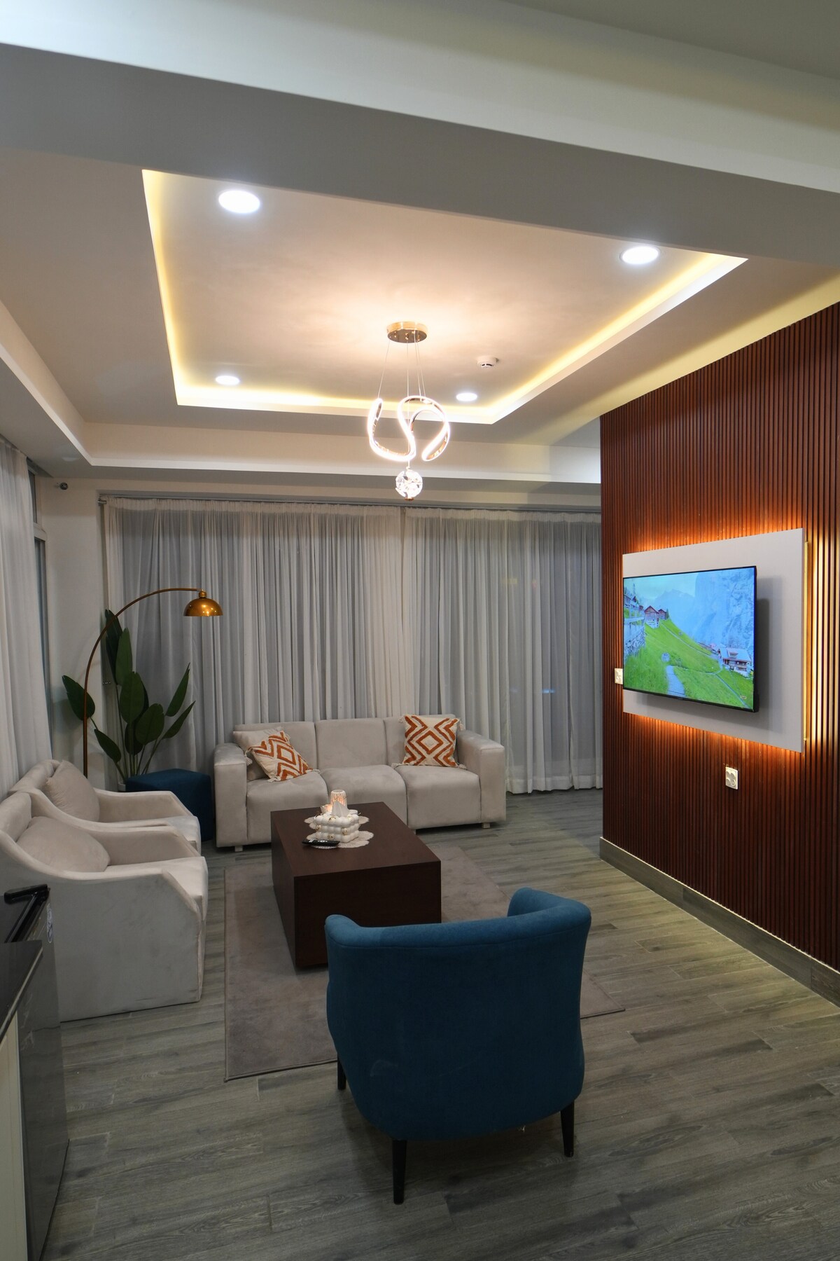 Zenith優惠, 2間設計師臥室 1間休息室 2個景觀露台 2間衛浴 1間功能性廚房 一個工作電梯、所有房間均設有空調,包括休息室、一個全新的冰箱和冷凍室、純淨水和一個分配器 所有廚房電器,如水壺、微波爐、榨汁機、多士爐、空氣炸鍋、餐具、咖啡機和電爐。 4K三星LED、UPS系統、家庭劇院系統、空氣加濕器、吸塵器、電熱爐、全套清潔用品、浴室用品。