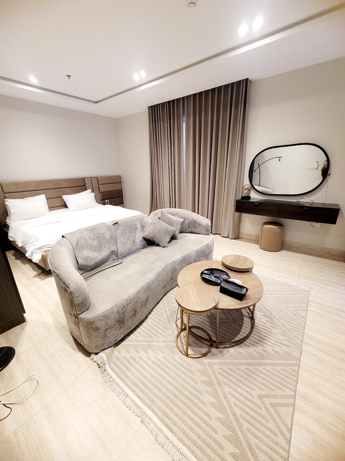 旅遊局許可證號碼:50033592 優雅且自助式公寓 由主臥室、客廳、廚房、65吋智能螢幕、互聯網連接和洗手間組成 有共用泳池和兒童玩具 靠近商業街,附近有各種服務 距離King Fahd Causeway 5分鐘 距離達蘭購物中心和Al Khobar Waterfront 15分鐘 每位旅人離開後,我們都會清潔旅居