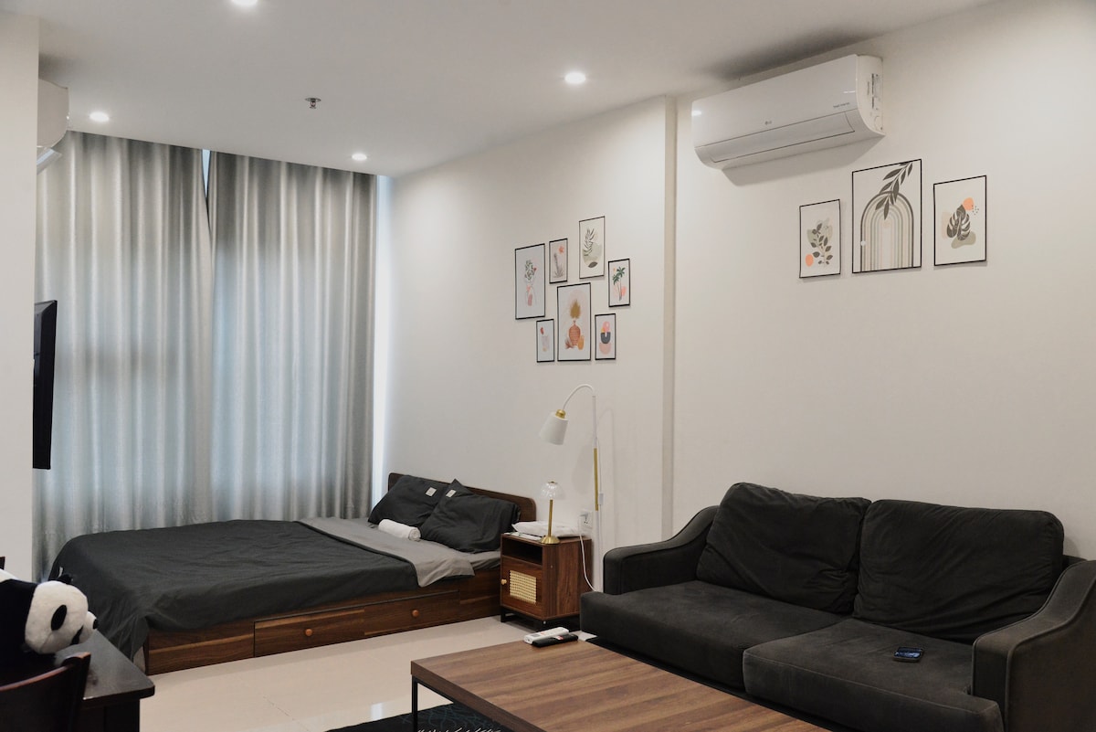 由迪拜室內設計師設計。 我試著為一間舒適的小公寓帶來一種待客之道。 我的第一個Airbnb設計,希望您有賓至如歸的感覺-舒適清爽。 我將來會嘗試增加更多設備,但如果您前往胡志明市,暫時可以獲得我的免費指導(來自在胡志明市居住了10多年的室內設計師)。 祝你有個愉快的住宿體驗:)
