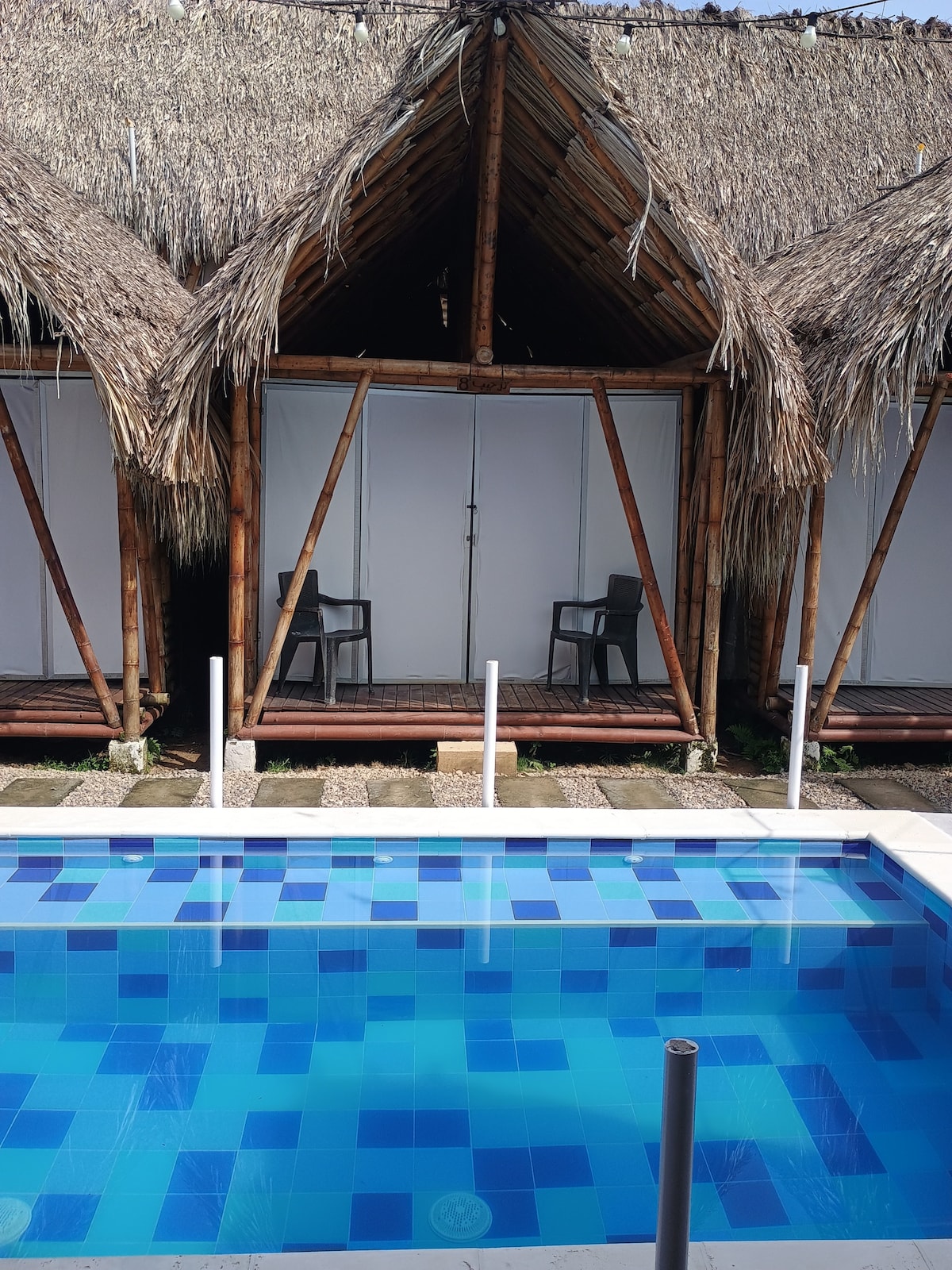Cabaña Beach Palomino, es un hostal donde vivirás una experiencia diferente, cada habitación cuenta con baño privado en cerámica, colchón ortopédico, ventilador y toldillo premium. En Cabaña Beach Palomino encontraras una Piscina encantadora para disfrutar, zona social, red wi-fi y un ambiente cómodo y natural. La ubicación es muy central: a 7 minutos de la playa caminando y cerca de los principales restaurantes del pueblo.