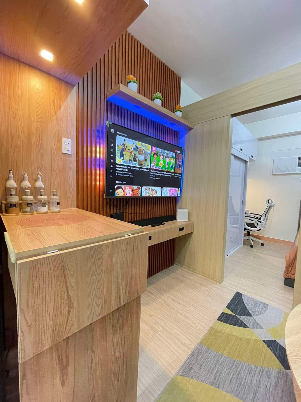 單間公寓可容納4名成人和1名兒童。 曼達盧永📍Acqua Residence 入住和退房時間:下午 2: 00/中午 12: 00 - 1 張雙人床 - 1 張雙人床墊 -免費使用游泳池 -免費咖啡和盥洗用品 -免費使用調味品 - WiFi/智慧電視,可收看 Netflix -桌遊 -餐具 -電磁爐 -電熱水壺 -微波爐 -冰箱 - 電鍋 -提供飲用水 -付費停車位(400 菲律賓披索 + 整個住宿)僅限先到先得